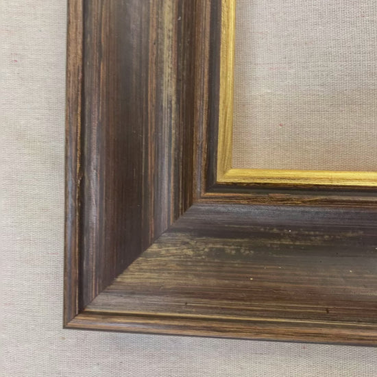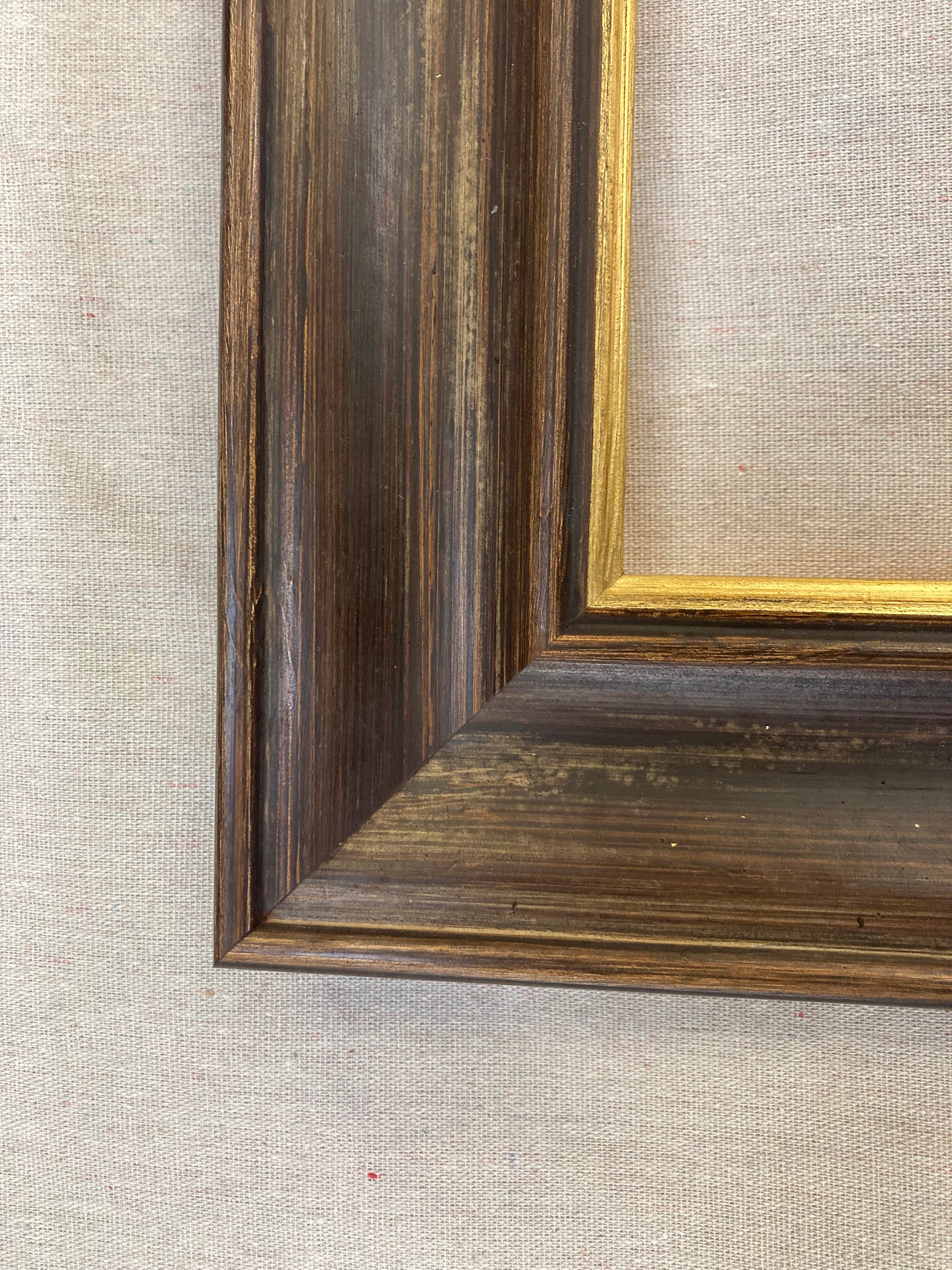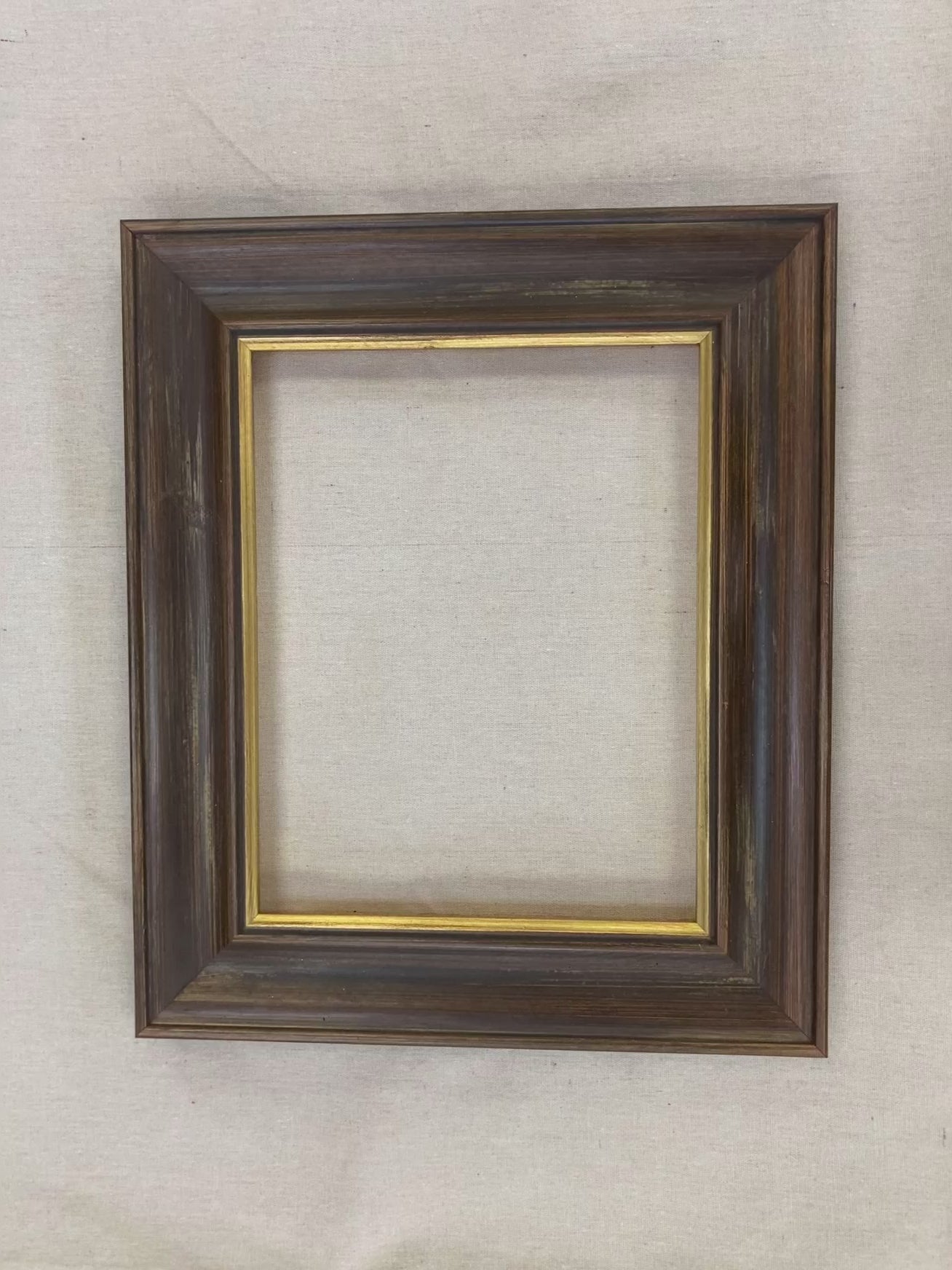 3 inch wide ogee scoop. Finish is brown faux wood with a gold lip. Rabbet is 15/16" deep.